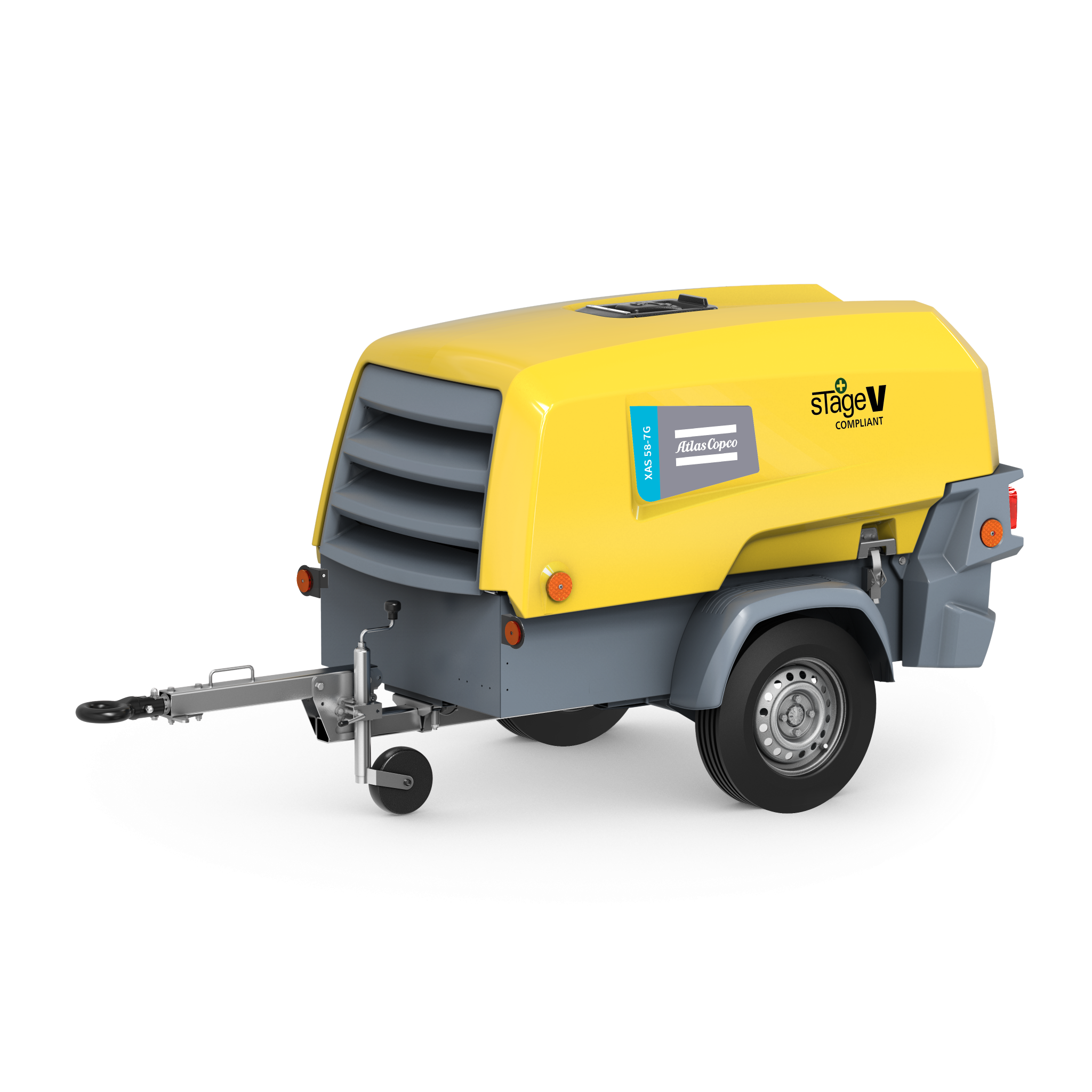 Design robusto com carenagem anticorrosiva, baixos níveis de ruído e manutenção acessível. Atlas Copco+1