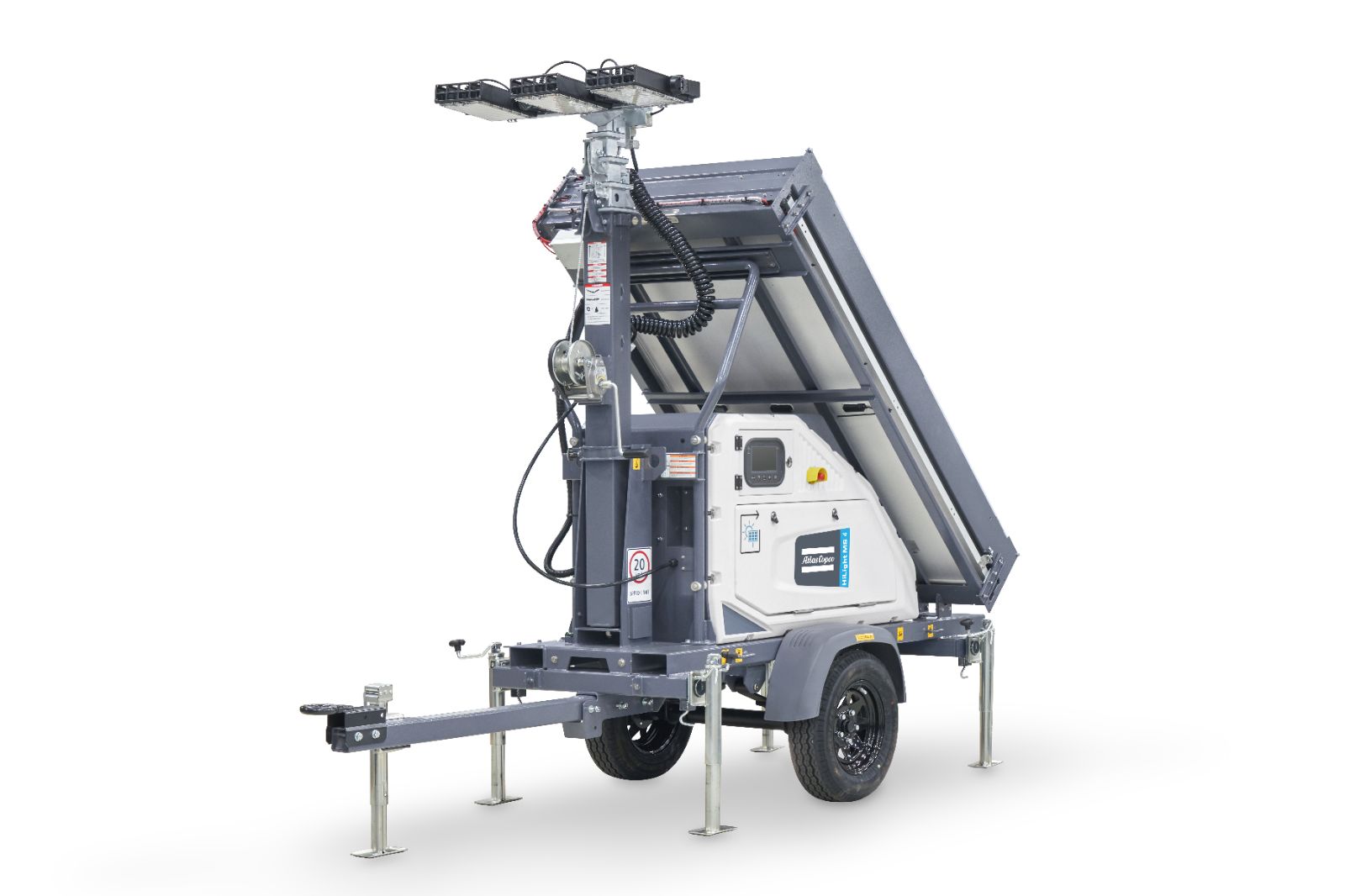 A HiLight MS 4 é uma torre de iluminação movida a energia solar, projetada para operações em locais remotos, canteiros, eventos e ambientes industriais que exigem iluminação confiável, sem emissão de combustível nem ruído. Com tecnologia de baterias de íons de lítio e painéis solares integrados, ela garante operação silenciosa e sustentável. Atlas Copco+2Atlas Copco+2